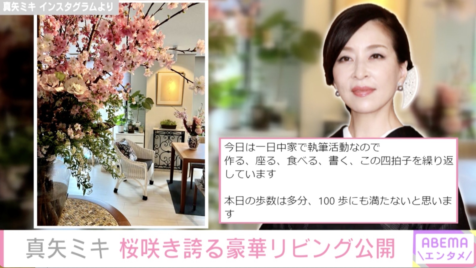 女優の真矢ミキ(59)がInstagramで満開の桜が咲き誇る、自宅リビングを公開。“ホテル”のようなその豪華さが話題になっている。 29日の投稿で真矢は「桜もそろそろ見納めでしょうか 空が久し・・・